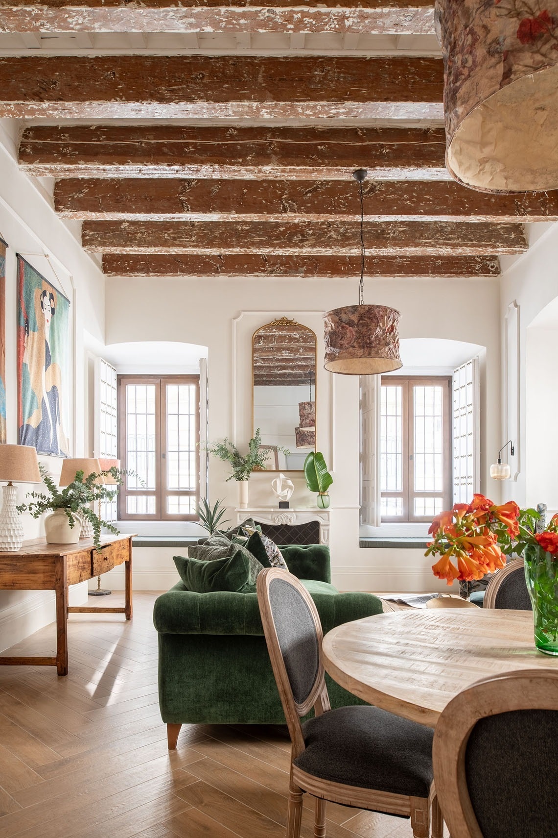 Nuestro Apartamento con Patio Privado de 80m2, ubicado en planta baja, se compone de un amplio salón comedor que se fusiona elegantemente con la cocina, creando un ambiente moderno y acogedor que te hará sentir como en casa. Desde aquí, se accede directamente a un patio privado de 35m2, equipado con una ducha para poder refrescarse en los días más calurosos, tumbonas y una encantadora mesa para dos personas, ideal para disfrutar de una comida o un desayuno al aire libre.