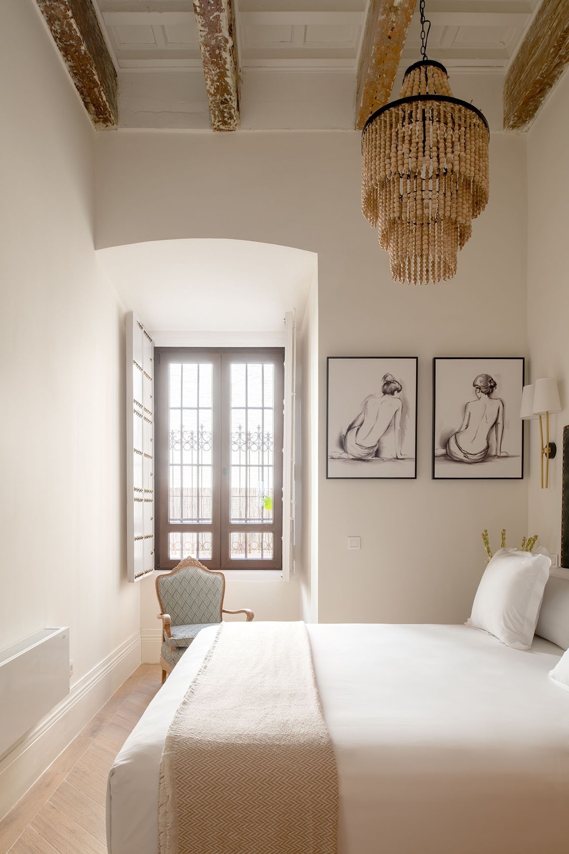 El dormitorio tiene una cómoda cama de matrimonio de 180x200 cm, un armario y una Smart TV.